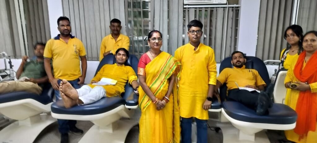 जमशेदपुर: रविवार 5 अक्टूबर 2025 दिन रविवार ब्लड बैंक जमशेदपुर में प्रातः 9 बजे से शाम 5 बजे तक गायत्री परिवार नवयुगदल युवा प्रकोष्ठ एवं प्रज्ञा महिला मण्डल द्वारा 61 वां रक्तदान शिविर का आयोजन किया गया। कार्यक्रम का शुभारम्भ गायत्री महायज्ञ के साथ हुआ। इस अवसर पर सम्मानित अतिथि श्री अजय पाण्डेय जी, भारतीय संस्कृति ज्ञान परीक्षा क़े प्रांतीय प्रभारी श्री ताराचंद अग्रवाल जी, झारखण्ड मुक्ति मोर्चा क़े प्रदेश प्रवक्ता श्री कुणाल शारंगी जी, प्रज्ञा महिला मण्डल की अध्यक्षा बहन जसवीर कौर जी क़े करकमलों द्वारा दीप प्रज्जवलन, गुरु आव्हान एवं आशीर्वाचन क़े साथ हुआ।