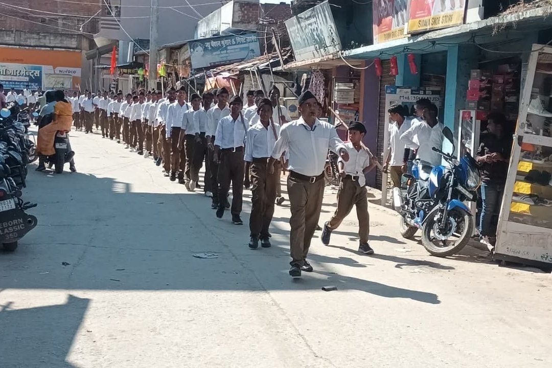 मझिआंव में संघ का शताब्दी वर्ष पथ संचलन, 200 स्वयंसेवक हुए शामिल