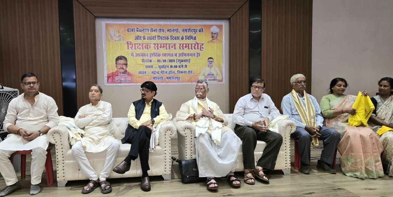 जमशेदपुर:बाबा बैद्यनाथ सेवा संघ की ओर से मानगो डिमना रोड स्थित महेंद्र मैरिज हॉल में शिक्षक सम्मान समारोह धूमधाम से मनाया गया ।