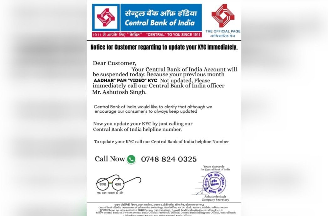 रांची: बैंक ग्राहकों को एक नए तरह के फ्रॉड से सतर्क रहने की जरूरत है। साइबर ठग अब बैंकों के नाम पर लेटर हेड जारी कर रहे हैं, जिस पर किसी फर्जी “आशुतोष सिंह, कंपनी सेक्रेटरी” का हस्ताक्षर किया गया है। इन लेटरों में ग्राहकों से कहा जा रहा है कि वे अपना KYC (Know Your Customer) अपडेट करें।