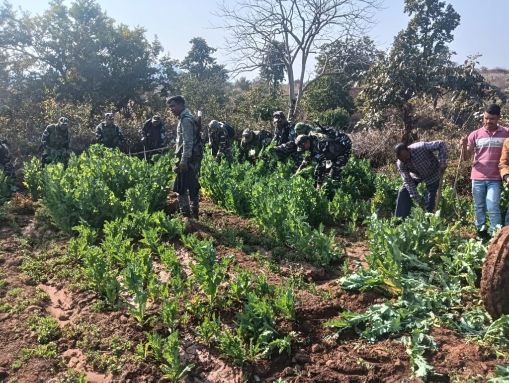 लातेहार: सशस्त्र सीमा बल (SSB) की 32वीं वाहिनी ने नशे के खिलाफ बड़ी कार्रवाई करते हुए लातेहार जिले के बरियातू प्रखंड अंतर्गत वन क्षेत्र में अवैध रूप से की जा रही अफीम की खेती को नष्ट किया है। यह विशेष अभियान 19 जनवरी से 22 जनवरी 2026 तक चलाया गया, जिसके तहत करीब 115 एकड़ भूमि में लगी अफीम की फसल का पूर्ण रूप से विनष्टीकरण किया गया।