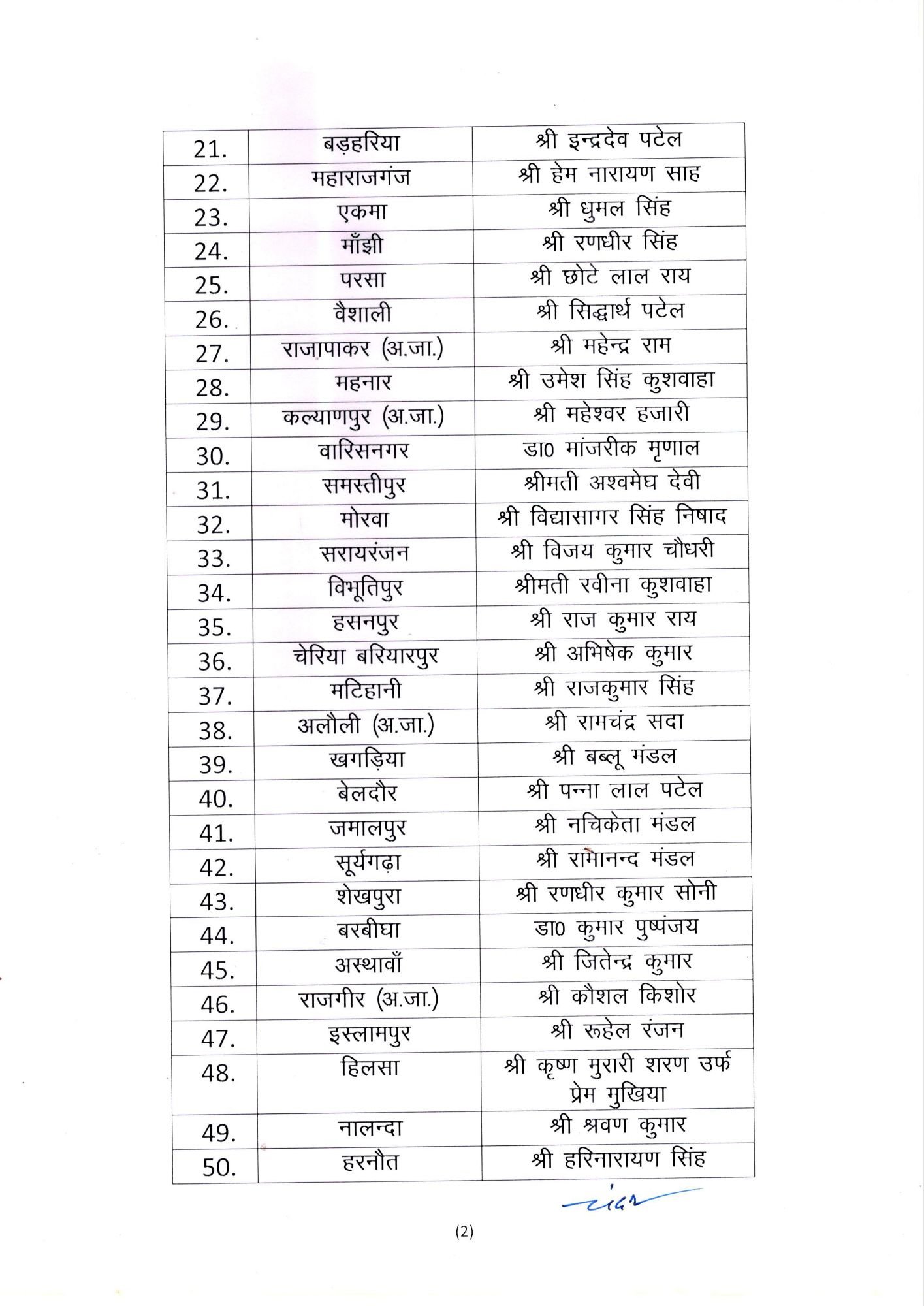 प्राप्त जानकारी के अनुसार गायघाट से कमल सिंह सोनबरसा से रत्नेश सादा एकमा से धूमल सिंह राजगढ़ से कौशल किशोर को उतार दिया है।