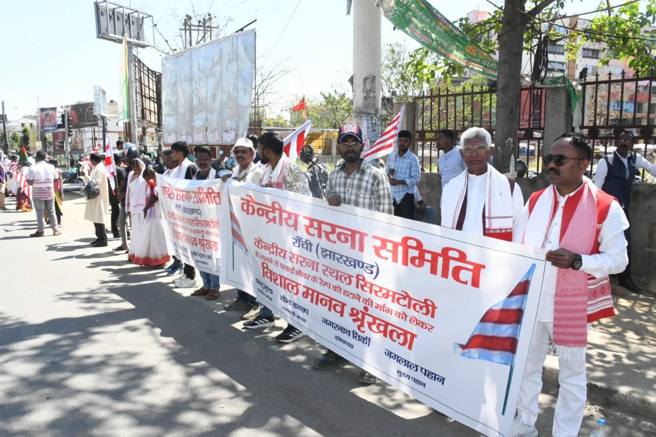 रांची: केन्द्रीय सरना स्थल से छेड़छाड़ के विरोध में राज्य सरकार के खिलाफ विशाल मानव श्रृंखला