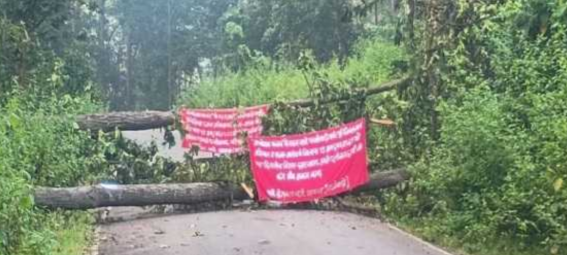 चाईबासा: हाशिए पर आ रहे नक्सलियों की सुरक्षा बलों को फिर चुनौती, सड़क पर पेड़ काट गिराया,मार्ग अवरूद्ध, चेतावनी भरा बैनर टांगा