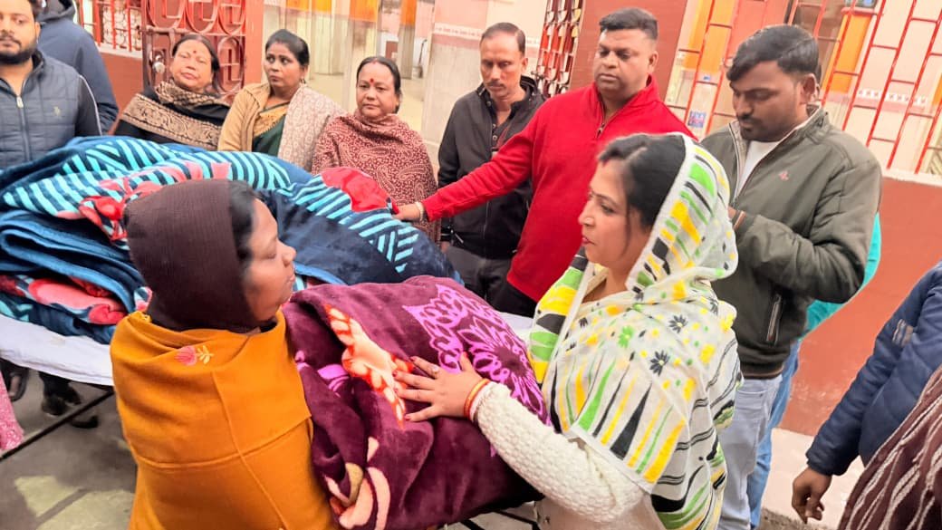 जुगसलाई गौरी शंकर रोड काली स्थान रोड स्थित शिव मंदिर प्रांगण में सेवा ही लक्ष्य संस्था ने बांटा कंबल