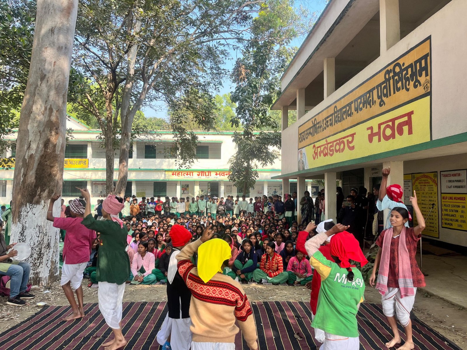 पटमदा / जमशेदपुर : जिले के विद्यालयों में शनिवार को 2025 की आखिरी क्लास लगी, फिर विद्यालय शीतकालीन अवकाश के लिए बंद हो गए। छुट्टियों का सकारात्मक उपयोग बच्चे किताबें और कहानियां पढ़कर कर सकते है, इसी संदेश के साथ भारतीय जन नाट्य संघ से जुड़े लिटिल इप्टा के नौ बाल रंगकर्मी पटमदा के एस एस +2 उच्च विद्यालय पहुंचे। अपनी उम्र के बच्चों को बाल कलाकार के रूप में देखने विद्यालय के सैकड़ों बच्चे विद्यालय प्रागंण में ही स्थित अम्बेडकर भवन के पास जुटे हुए थे।