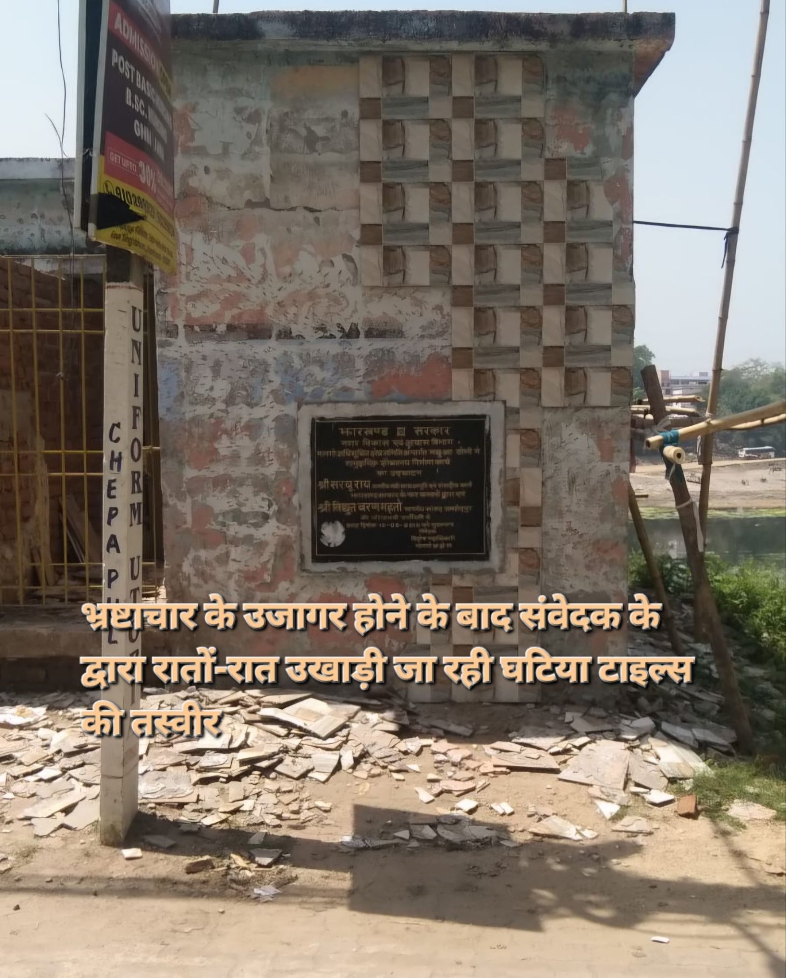 मानगो में विधायक निधि से घटिया गुणवत्ता कार्य, शिकायत,रातों-रात संवेदक ने उखड़वा दिया घटिया टाइल्स