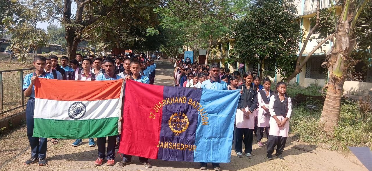राजनीतिक विज्ञान के प्राध्यापक और NCC कमांडर डॉ.विकास मुंडा जी ने अपने संबोधन में कहा की बच्चों यह धरती हमारी है और अपनी धरती पर हमें गर्व करना चाहिए, अपने संविधान पर गर्व करना चाहिए, अपने नियम कानून पर गर्व करना चाहिए और अपनी व्यवस्था पर गर्व करना चाहिए, तभी हम अपनी भारत माता के साथ न्याय कर पाएंगे और खुद को भी स्थापित करते हुए समाज का अभिन्न अंग बना पाएंगे यह समाज हमारा है, आपका है, आने वाली पीढियों का है तो इस अवसर पर क्यों ना हम मैत्री भाव के साथ जात-पात को छोड़ते हुए, एकता के रस में रहते हुए भारत को विश्व गुरु बनाने के लिए प्रयास करें।