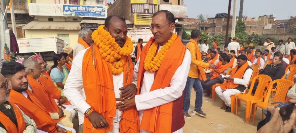 मझिआंव (गढ़वा): भाजपा के नव निर्वाचित नगर मंडल अध्यक्ष दीपक चंद्रवंशी के सम्मान में ब्लॉक रोड स्थित शिव मंदिर परिसर में भव्य सम्मान समारोह का आयोजन किया गया। कार्यक्रम की अध्यक्षता भारतीय जनता पार्टी के जिला अध्यक्ष ठाकुर प्रसाद महतो ने की।