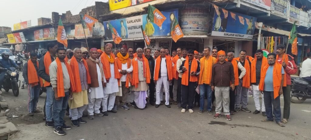 इसके पश्चात पलामू के पूर्व जिला अध्यक्ष नरेंद्र पांडे, प्रेमानंद त्रिपाठी, निवर्तमान नगर पंचायत अध्यक्ष सुमित्रा देवी, सांसद प्रतिनिधि शोभा जयसवाल, युवा समाजसेवी मारुति नंदन सोनी, भाजपा के वरिष्ठ नेता वीरेंद्र नाथ दुबे, पूर्व नगर मंडल अध्यक्ष अर्जुन दास एवं सच्चिदानंद सिंह सहित लगभग 200 भाजपा कार्यकर्ताओं को तिलक लगाकर और भगवा गमछा देकर स्वागत किया गया।