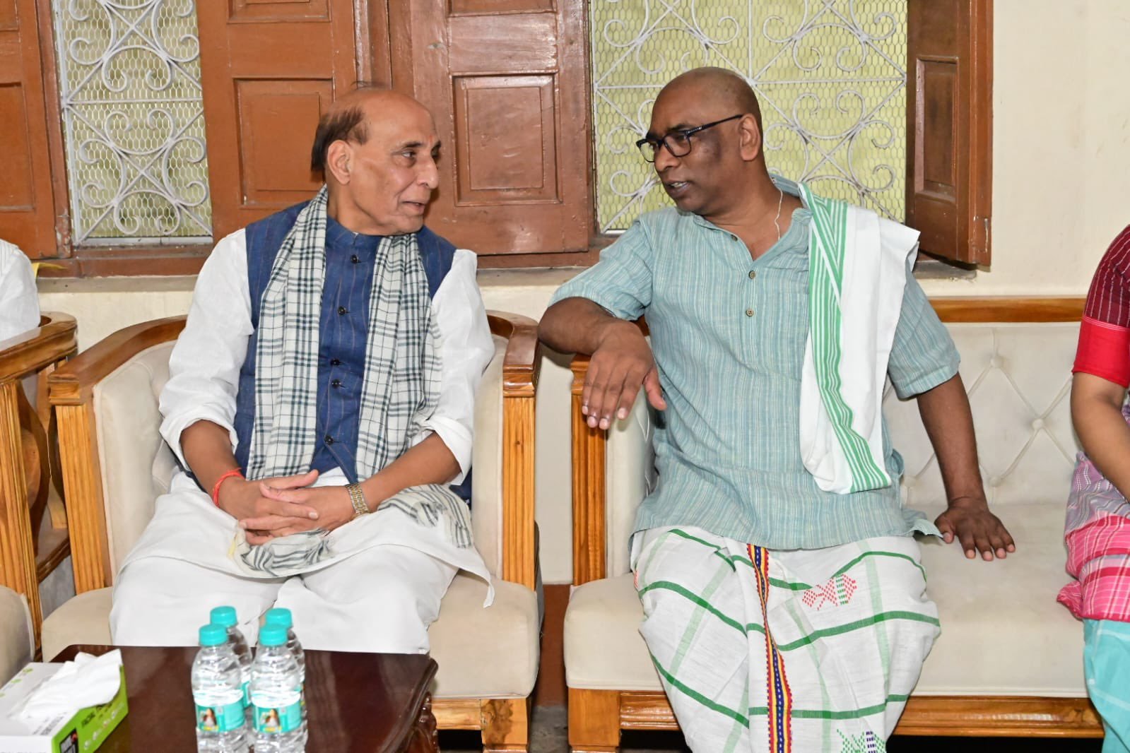केंद्रीय रक्षा मंत्री राजनाथ सिंह ने पहुंचकर गुरुजी की तस्वीर पर पुष्प अर्पित किए और उन्हें नमन किया।