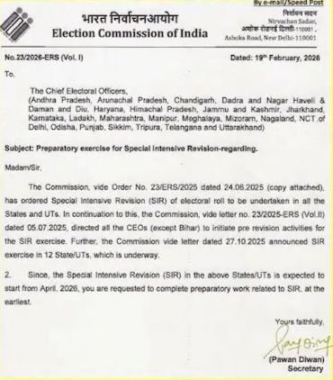 इस संबंध में चुनाव आयोग के सचिव पवन दीवान ने 22 राज्यों और केंद्र शासित प्रदेशों के मुख्य निर्वाचन अधिकारियों (CEO) को पत्र भेजा है। पत्र में स्पष्ट निर्देश दिए गए हैं कि SIR से जुड़ी सभी प्रशासनिक और तकनीकी तैयारियां जल्द से जल्द पूरी की जाएं, ताकि आगे किसी तरह की देरी न हो।