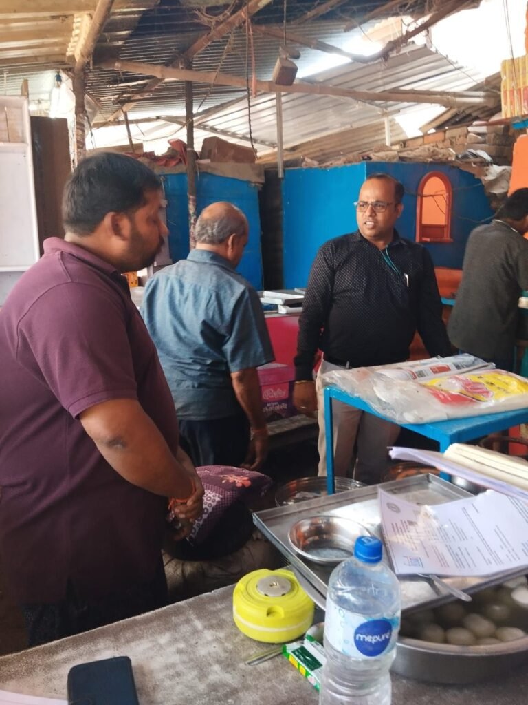 सिंह मिष्ठान भंडार में लगभग 3 किलो खराब रसगुल्ला पाया गया, जिसे मौके पर नष्ट किया गया।