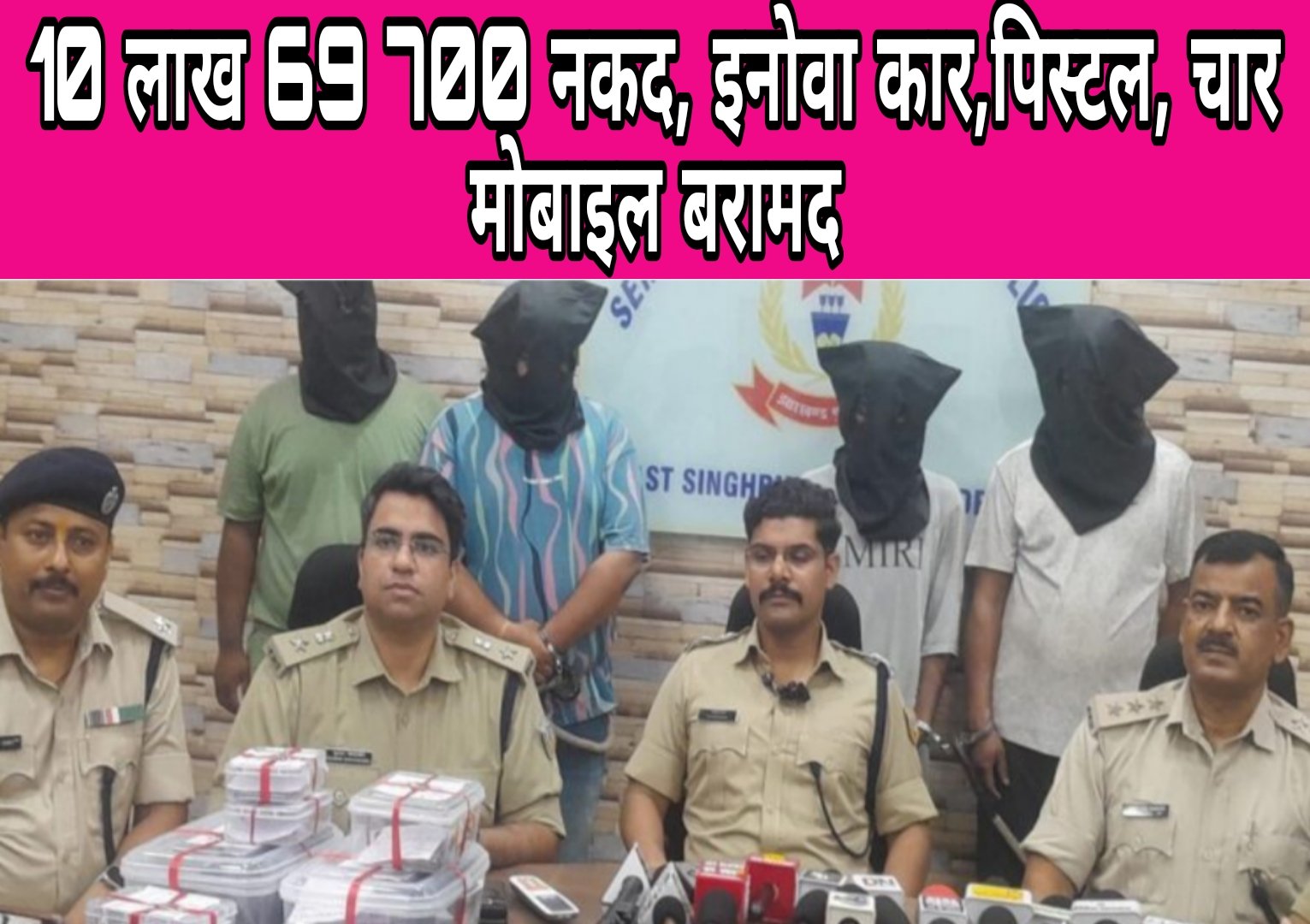 जमशेदपुरः बिष्टुपुर थाना क्षेत्र स्थित गुरुद्वारा रोड पर 4 सितंबर को व्यापारी की आंख में मिर्ची पाउडर डालकर लाखों रुपए लूटकर सनसनी मचाने वाले गिरोह के चार सदस्य पुलिस के हत्या चढ़ गये हैं। जिनके पास से 10 लाख 69700 नकद इनोवा कार देसी पिस्टल और चार मोबाइल फोन बरामद करने में पुलिस को सफलता मिली है।