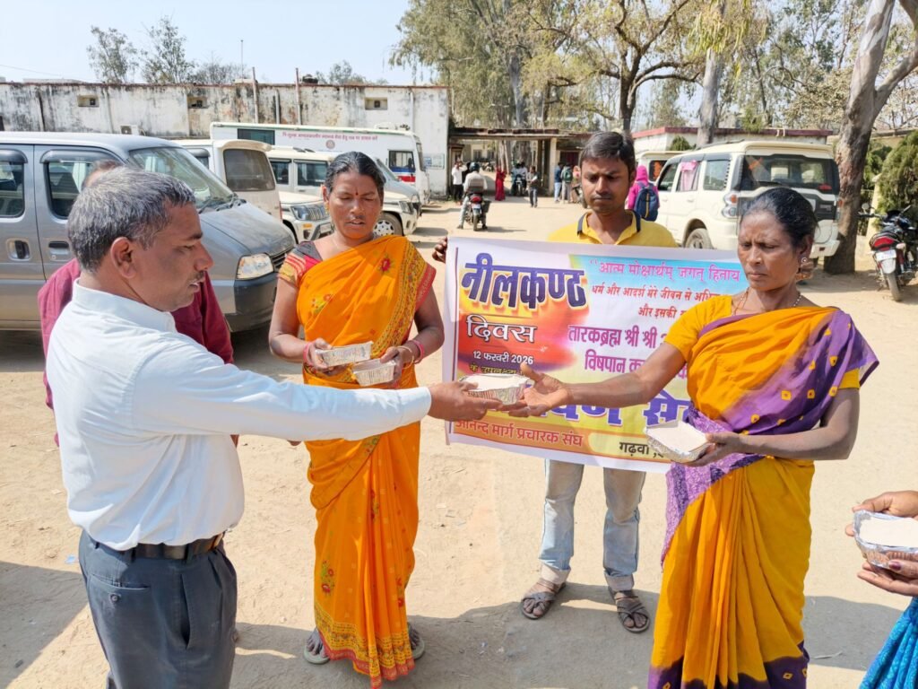 गढ़वा: आनंदमार्ग प्रचारक संघ, सोनपुरवा (गढ़वा मुख्यालय) की ओर से आनंदमार्गी बंधुओं ने नीलकंठ दिवस जागृति के रूप में मनाया। इस अवसर पर श्रद्धेय बाबा श्री श्री आनंदमूर्ति जी के निर्देशानुसार जरूरतमंद, भूखे-प्यासे सैकड़ों लोगों के बीच विभिन्न सार्वजनिक स्थलों अस्पताल परिसर, रेलवे स्टेशन, हाट-बाजार तथा घुमंतू क्षेत्रों में स्वादिष्ट भोजन का वितरण किया गया। बताया गया कि प्रत्येक आनंदमार्गी परिवार इस दिन अपने घरों में दुगुना भोजन बनाकर परिवार के साथ-साथ लाचार एवं जरूरतमंद लोगों को भोजन कराता है।