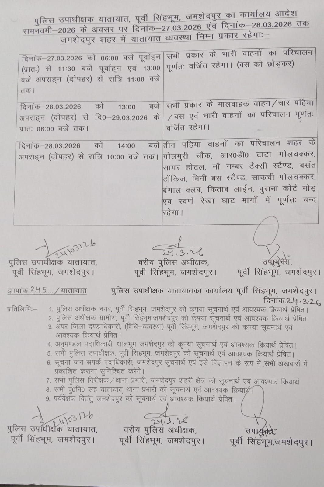 जमशेदपुर:रामनवमी को लेकर जिले में देखें ट्राफिक व्यवस्था में बदलाव, कब से कब तक