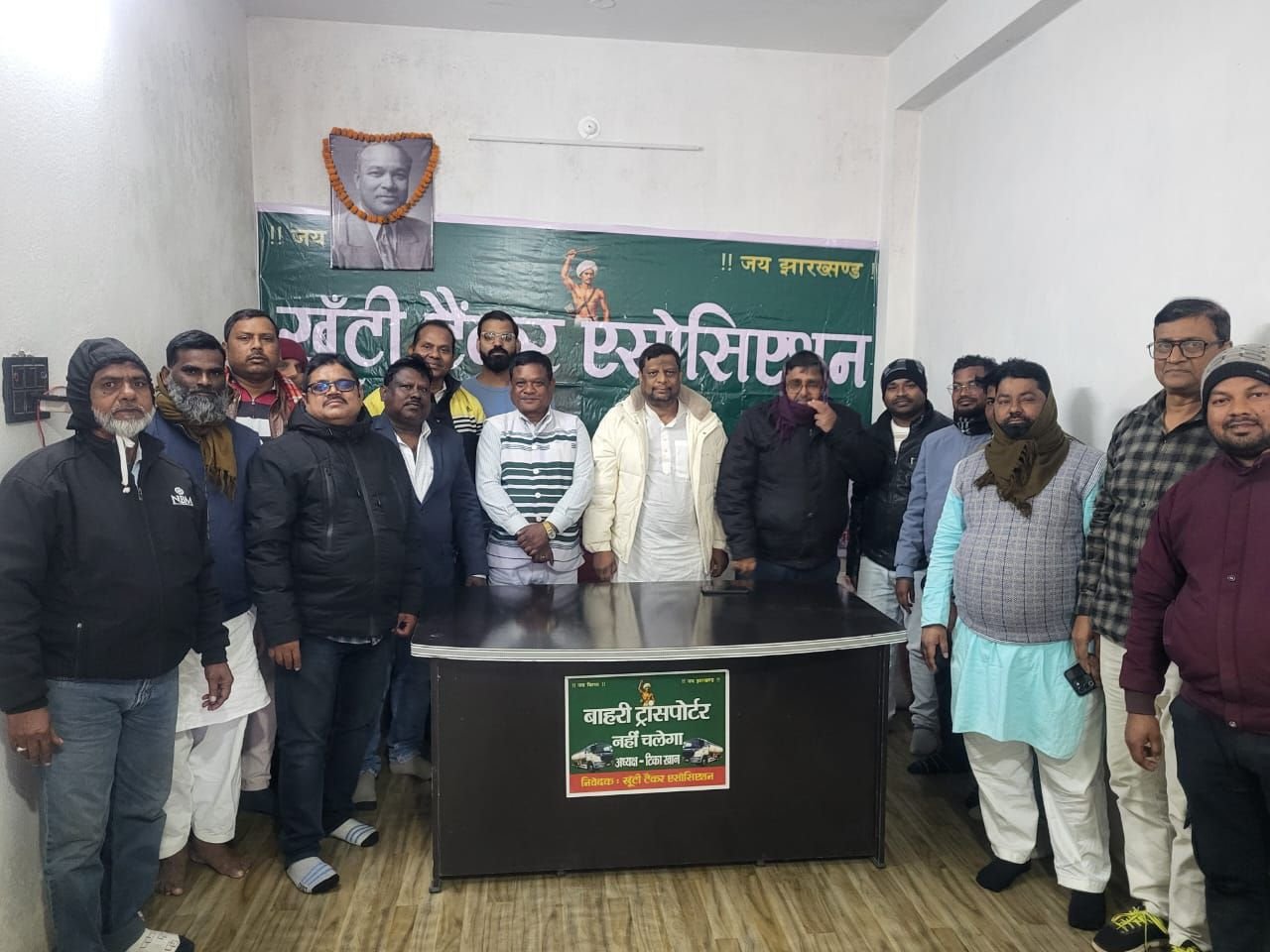 खूंटी; खूंटी टैंकर एसोशिएशन की एक आवश्यक बैठक शुक्रवार को केंद्रीय कार्यालय में हुई। अध्यक्षता खूंटी टैंकर एसोशिएशन के महामंत्री संजय होरो ने की। इस अवसर पर खूंटी टैंकर एसोशिएशन के अध्यक्ष टीका खान ने कहा कि एसोशिएशन स्थानीय युवा युवतियों के लिए रोजगार का अवसर प्रदान करेगा। इसके साथ ही बहनों के लिए कंप्यूटर, सिलाई का प्रशिक्षण भी देगा।