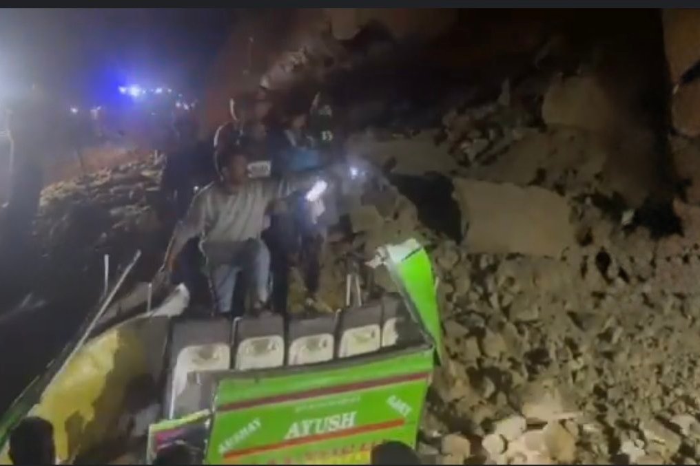 बिलासपुर: हिमाचल प्रदेश के बिलासपुर जिले में भारी बारिश के बाद बड़ा हादसा हो गया। जिले के बरठी के पास, भालू क्षेत्र में संतोषी नाम की एक निजी बस भूस्खलन की चपेट में आ गई। शुरुआती जानकारी के अनुसार, बस में लगभग 30 यात्री सवार थे। तेज बारिश के बाद पहाड़ का बड़ा हिस्सा टूटकर गिर गया और मलबे व पत्थरों ने बस को बुरी तरह क्षतिग्रस्त कर दिया। हादसे के वक्त बस मरोतन से घुमारवीं जा रही थी।घटना मंगलवार शाम करीब 6:25 बजे हुई, जब भालू पुल और बरठी के बीच बस गुजर रही थी। अचानक पहाड़ी से भारी मलबा और बड़े पत्थर बस की छत पर गिर गए, जिससे बस तहस-नहस हो गई। रिपोर्टों के मुताबिक, 10 लोगों की मौत हो गई है। कई यात्री गंभीर रूप से घायल बताए जा रहे हैं।