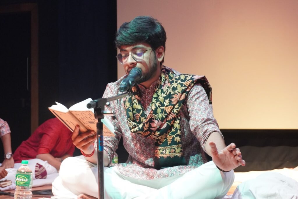 आयुष की कविता ‘ज़िंदगी के आगे’ ने जीवन के गहरे अर्थों को उजागर किया, शैल की भक्ति-प्रधान रचनाएँ ‘अधगले पत्ते’ और ‘एकांकी है’ ने श्रोताओं को भावविभोर कर दिया, जबकि सौम्या ने अपने मधुर गीतों से वातावरण को सुरमय बना दिया।