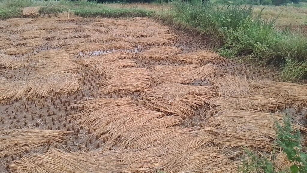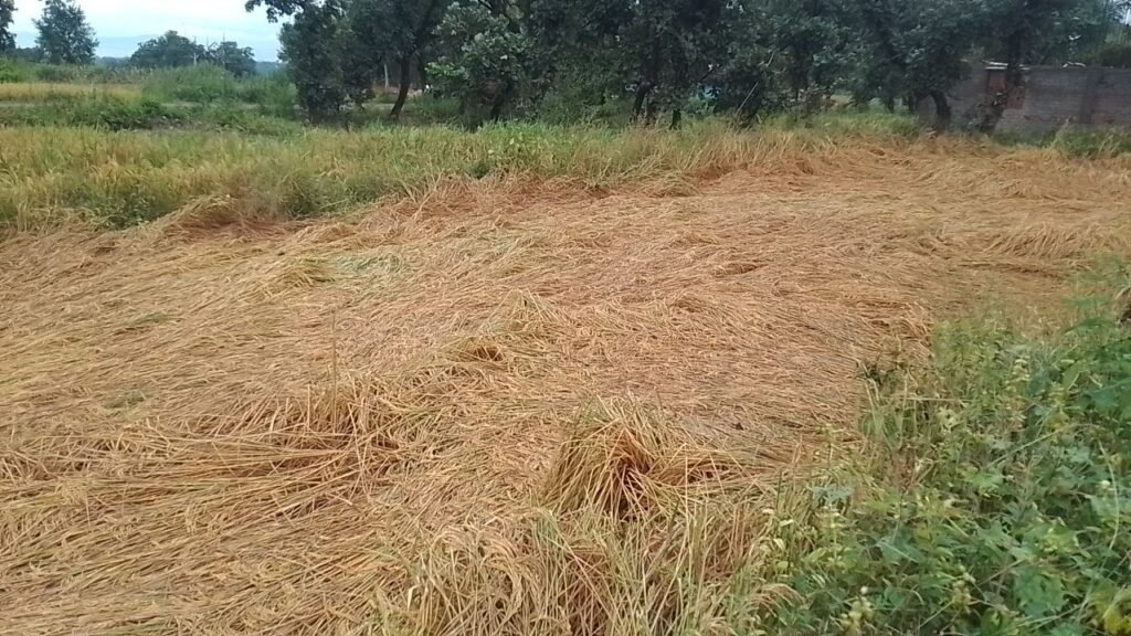 तीन महीने की कड़ी मेहनत से तैयार हुई धान की फसल बर्बादी के कगार पर है। कई किसानों ने कटाई शुरू ही की थी कि तेज बारिश और आंधी ने सब कुछ चौपट कर दिया। खेतों और खलिहानों में सुखाने के लिए रखे अनाज में भी पानी घुस गया, जिससे धान और अन्य अनाज सड़ने लगे हैं।