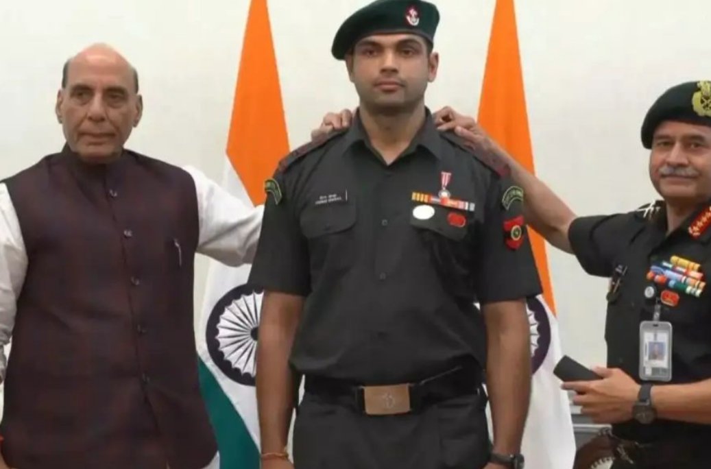 नई दिल्ली: भारत के गौरव और ओलंपिक गोल्ड मेडलिस्ट नीरज चोपड़ा को देश की सेना ने बड़ा सम्मान दिया है। उन्हें भारतीय सेना में “लेफ्टिनेंट कर्नल” की मानद उपाधि प्रदान की गई है। रक्षा मंत्री राजनाथ सिंह ने खुद उन्हें यह सम्मान सौंपा।