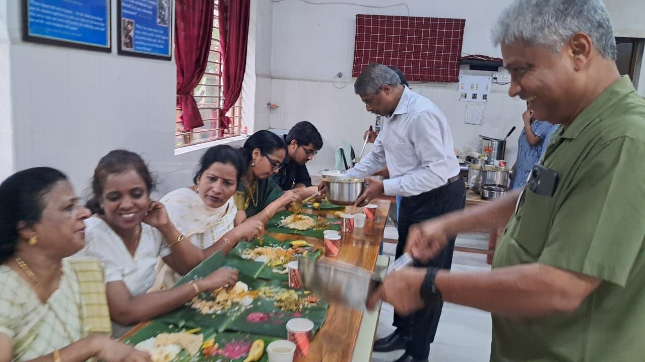 विदाई समारोह के बाद हम ओणम साध्य (केले के पत्ते में परोसे जाने वाले स्वादिष्ट व्यंजन) में चले गए, जहाँ हमने वृद्धाश्रम के निवासियों का स्वागत किया और पारंपरिक तरीके से सभी निवासियों और सदस्यों के लिए केले के पत्तों पर भोजन परोसा।