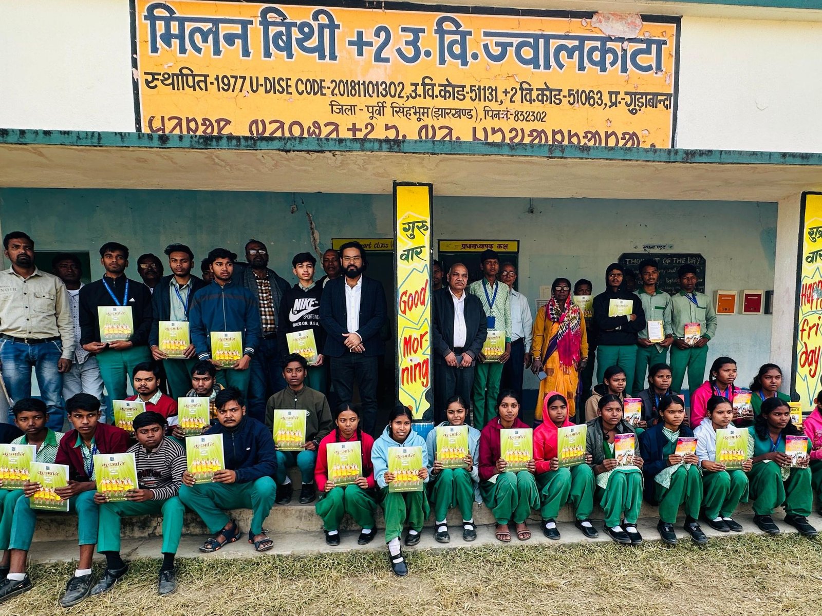 जमशेदपुर:झारखंड राज्य के कोल्हान प्रमंडल अंतर्गत पूर्वी सिंहभूम जिला के गुड़ाबंधा प्रखंड में स्थित मिलनभीति प्लस टू विधालय, ज्वालकाटा में झारखंडी क्षेत्रिय भाषाओं के संरक्षण और संवर्धन के लिए निशुल्क क्षेत्रिय भाषाओं के पाठयक्रम के अनुसार संथाली पाठ्य पुस्तक पे पाआ चावले, कुङमाली पाठ्यपुस्तक फूल फाॅर आर भांउर और मुंडारी पाठ्यपुस्तक मुंडारी भाषा व्याकरण आदि झारखंडी क्षेत्रिय भाषाओं के पाठ्यपुस्तक झारखंड डेवलपमेंट फाउंडेशन के द्वारा निशुल्क पुस्तक वितरण किया गया l