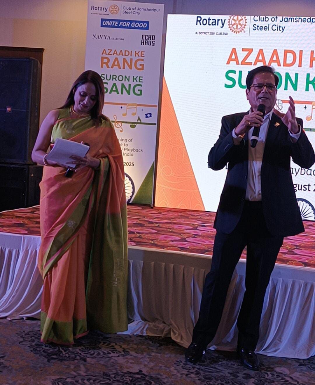 स्वतंत्रता दिवस के आगवन उत्सव को और विशेष बनाने हेतु शहर के एक होटल सभागार में “आजादी के रंग : सुरों के संग” कार्यक्रम आयोजित किया गया, जिसकी मेजबानी रोटरी क्लब ऑफ जमशेदपुर स्टील सिटी ने की।