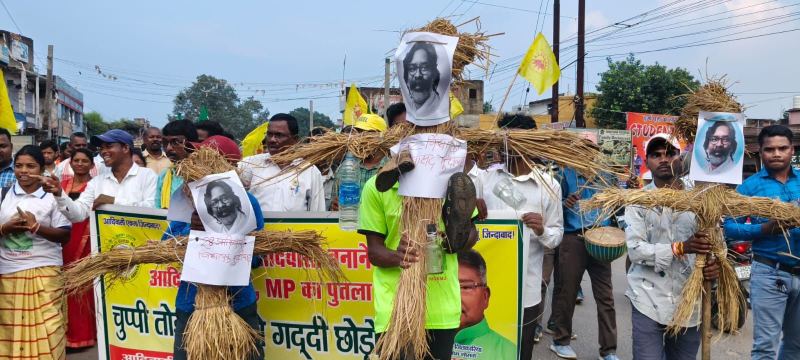 कुर्मी को आदिवासी बनाने वाले सीएम हेमंत,प्रतिपक्ष नेता बाबूलाल समेत 28 का पुतला सेंगेल ने फूंका
