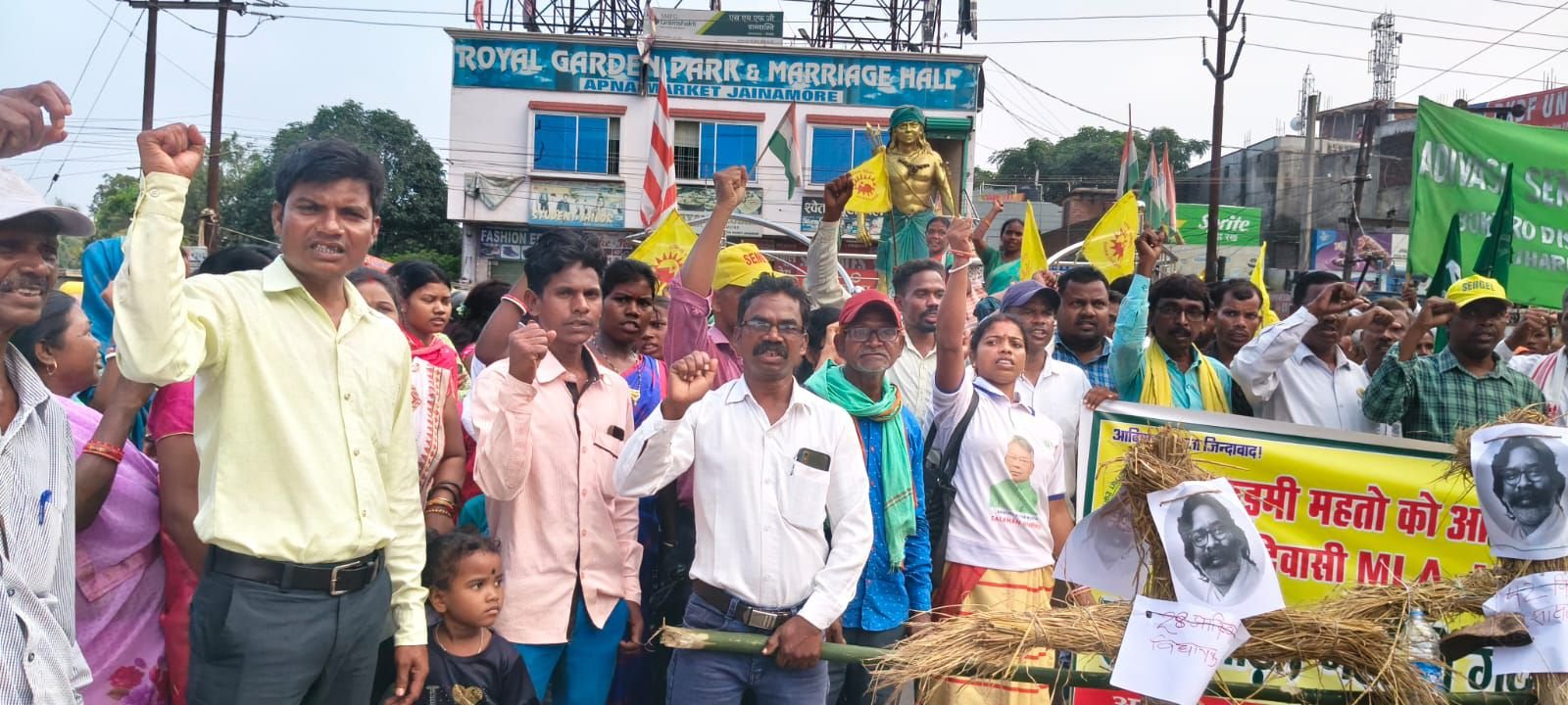 हेमंत सोरेन मुर्दाबाद। हेमंत सरकार होश में आओ। कुर्मी महतो को वोट की लालच में आदिवासी बनाना बंद करो। कुर्मी महतो आदीवासी बनाने वाले विधायक सांसद मुर्दाबाद। हेमंत सरकार चुप्पी तोड़ो, स्पष्टीकरण दो, कुरमी महतो के साथ हो या आदिवासी समाज के साथ हो ,नहीं तो गद्दी छोड़ो। जरुरत पड़े तो आदिवासी समाज 28 विधायक का आवास घेराव करेंगे।