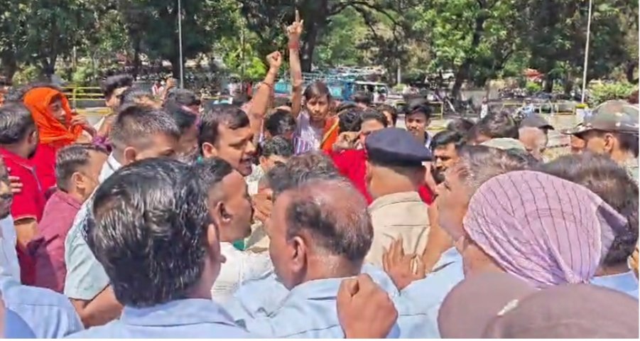 टाटा मोटर्स मुख्य गेट पर समाजसेवी बंटी सिंह और समर्थकों का धरना प्रदर्शन,जमकर नारेबाजी,क्यूआरटी पहुंची