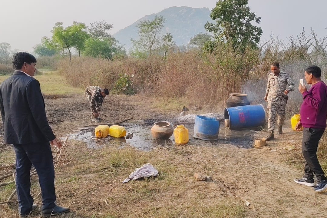 मझिआंव में अवैध शराब के खिलाफ बड़ी कार्रवाई, 11 क्विंटल जावा महुआ किया गया नष्ट