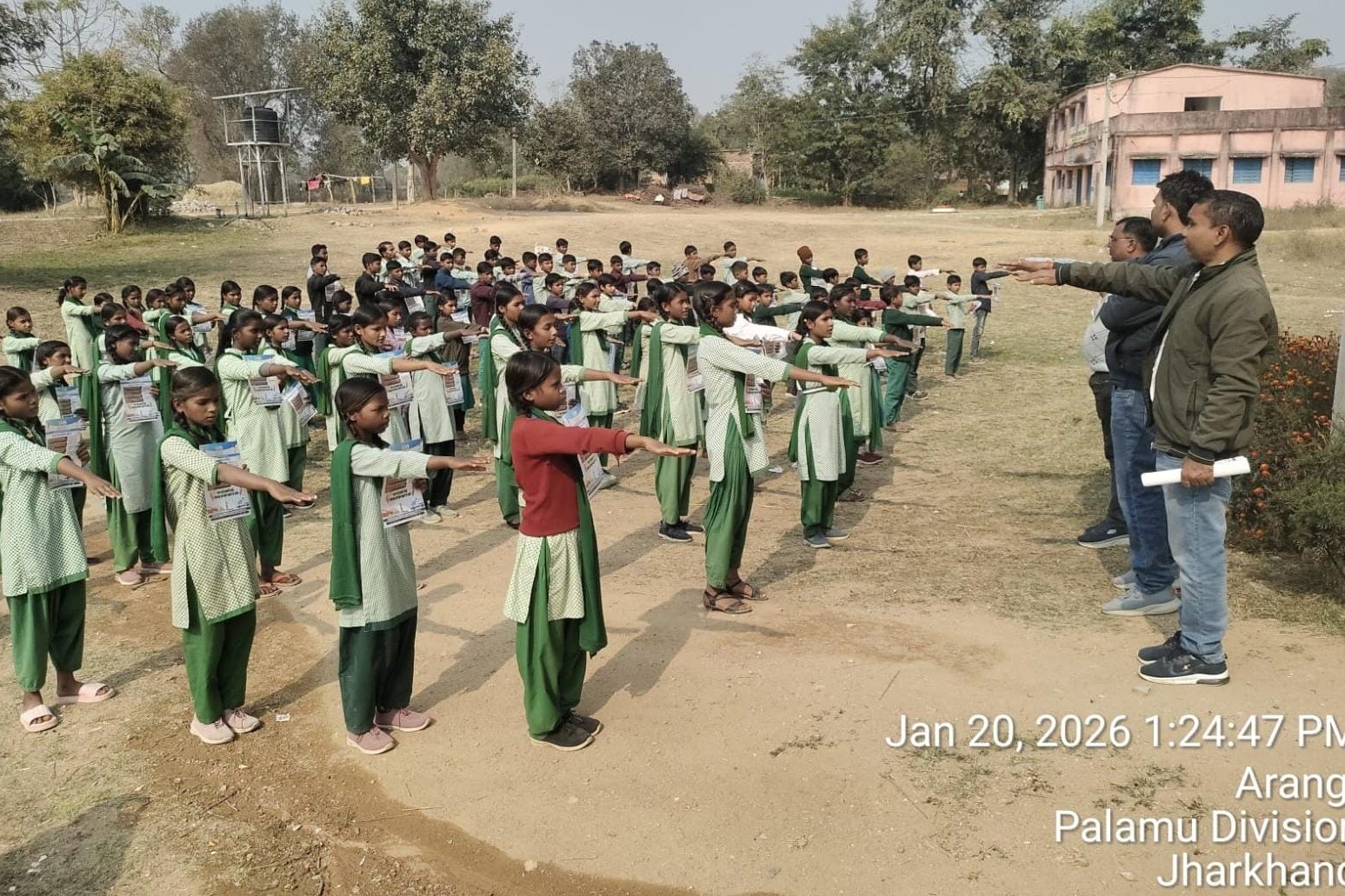सड़क सुरक्षा को लेकर गढ़वा में जागरूकता अभियान, छात्रों ने यातायात नियमों का पालन करने का दिया संदेश