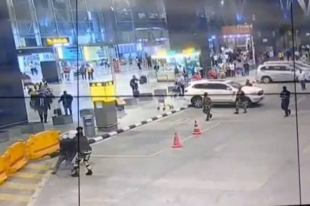 एयरपोर्ट पर टली बड़ी वारदात: चाकू लेकर टैक्सी चालकों पर टूट पड़ा शख्स, CISF ने दबोचा; VIDEO