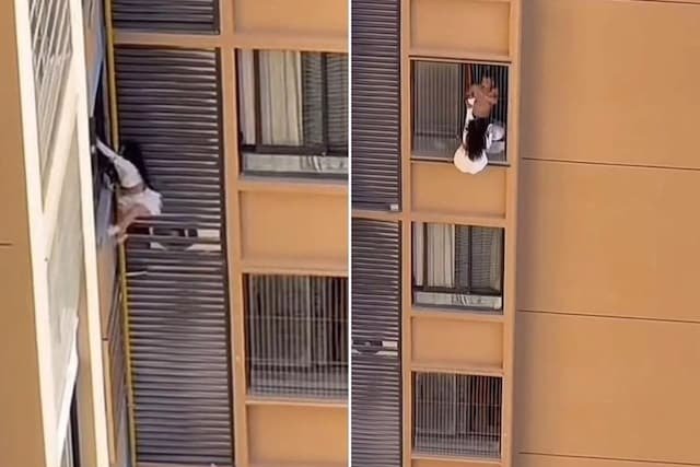 प्रेमी की बीवी से बचने के लिए 10वीं मंजिल से लटकी प्रेमिका, देखें खौफनाक वीडियो