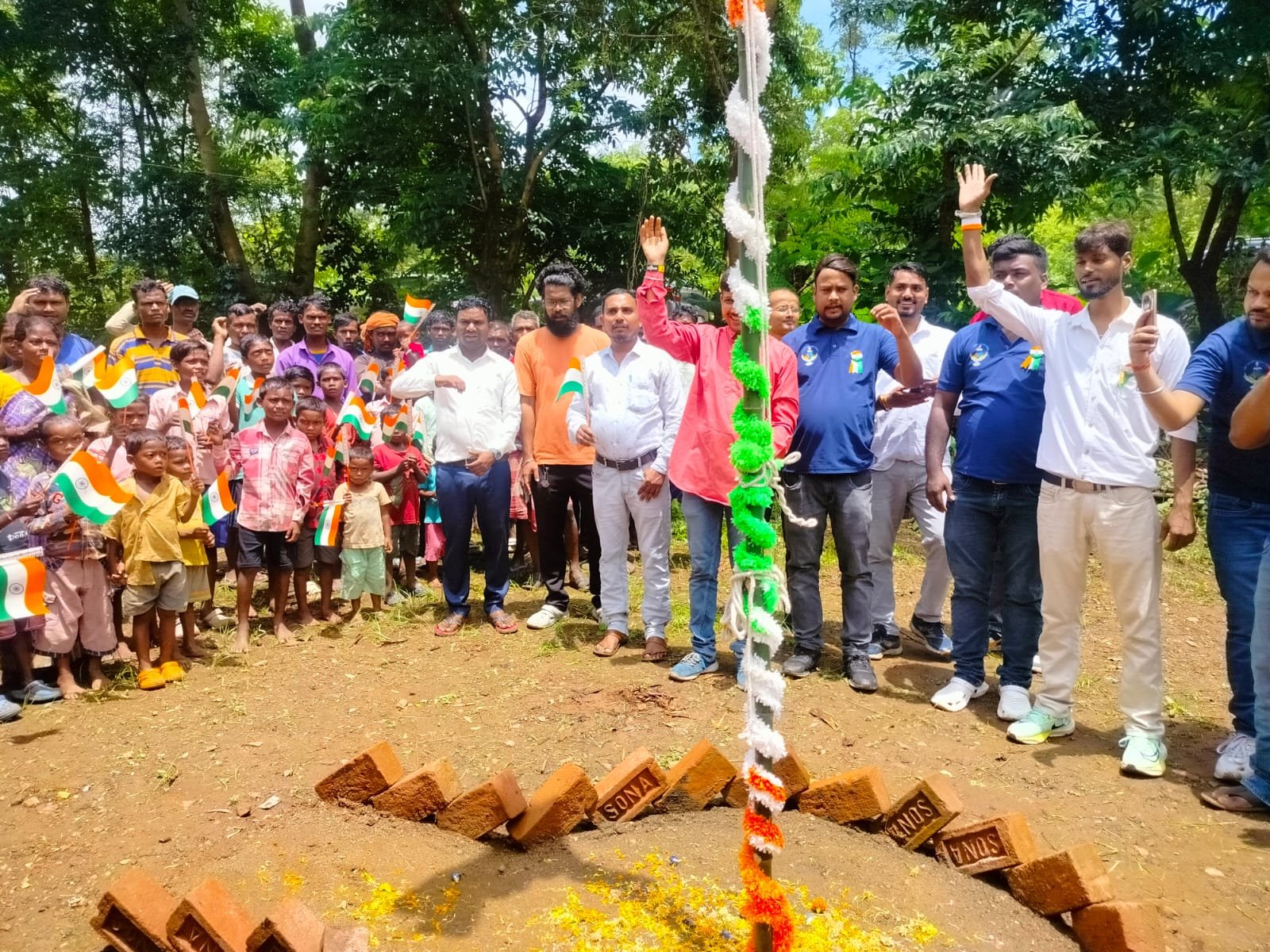 हरियाकोचा, पलाशडीह सबर टोला में झंडोतोलन,खेल सामग्री,नाश्ता,कपड़ा वितरित