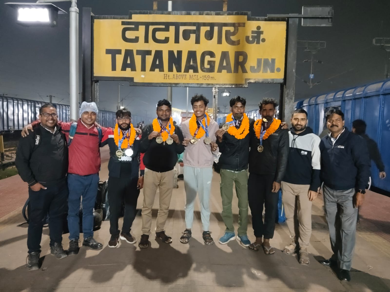 टाटा मुंबई मैराथन में भाग लेकर शहर लौटे रनजीनियर्स ग्रुप के धावकों का टाटानगर स्टेशन पर भव्य स्वागत