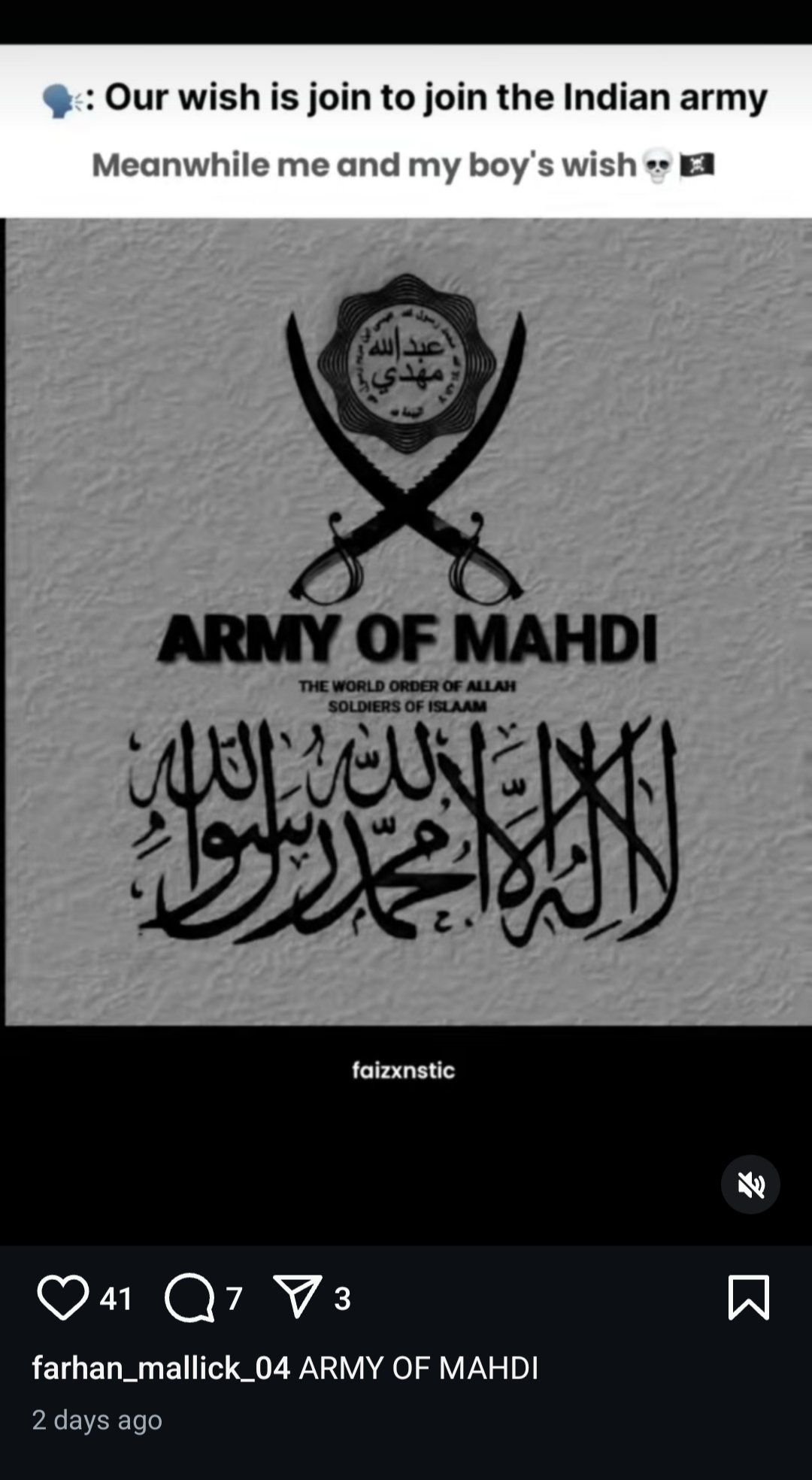 इस पोस्ट में विधायक क सिंह ने लिखा, “@JharkhandPolice @RanchiPolice ध्यान दें – फ़रहान मलिक, रांची निवासी ने अपने सोशल मीडिया पर जो तस्वीरें साझा की हैं, वे बेहद भड़काने वाली एवं राष्ट्रीय सुरक्षा व भारत की संप्रभुता से जुड़ा है। इंस्टाग्राम पर ‘ग़ज़वा-ए-हिंद’ का नारा, भारतीय सेना का अपमान, और सबसे गंभीर उसने वह झंडा साझा किया है, जो ISIS, तालिबान, अल-कायदा जैसे अंतरराष्ट्रीय आतंकी संगठनों की पहचान है।