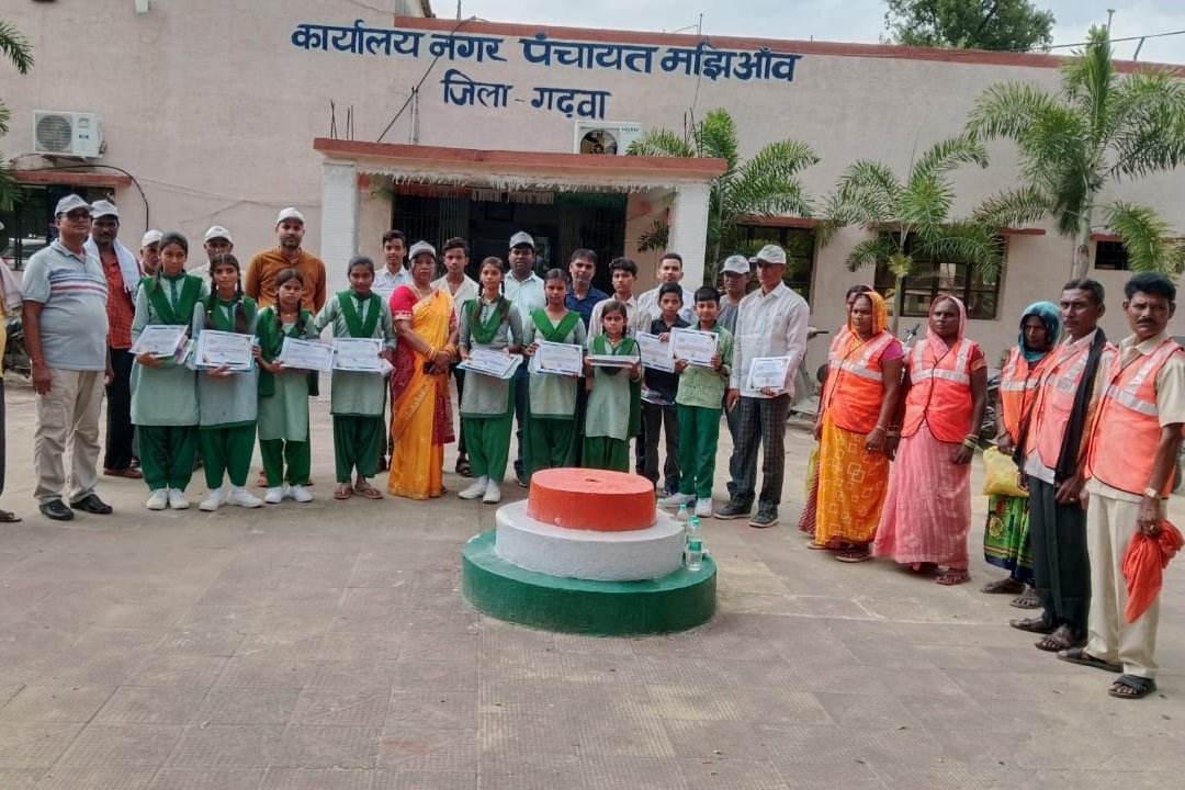 मझिआंव: गांधी-शास्त्री जयंती पर ‘स्वच्छता ही सेवा’ अभियान के विजेताओं को मिला पुरस्कार; सफाईकर्मियों का भी हुआ सम्मान