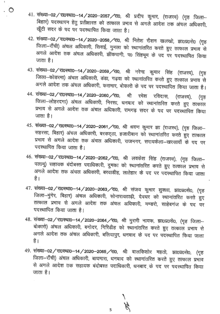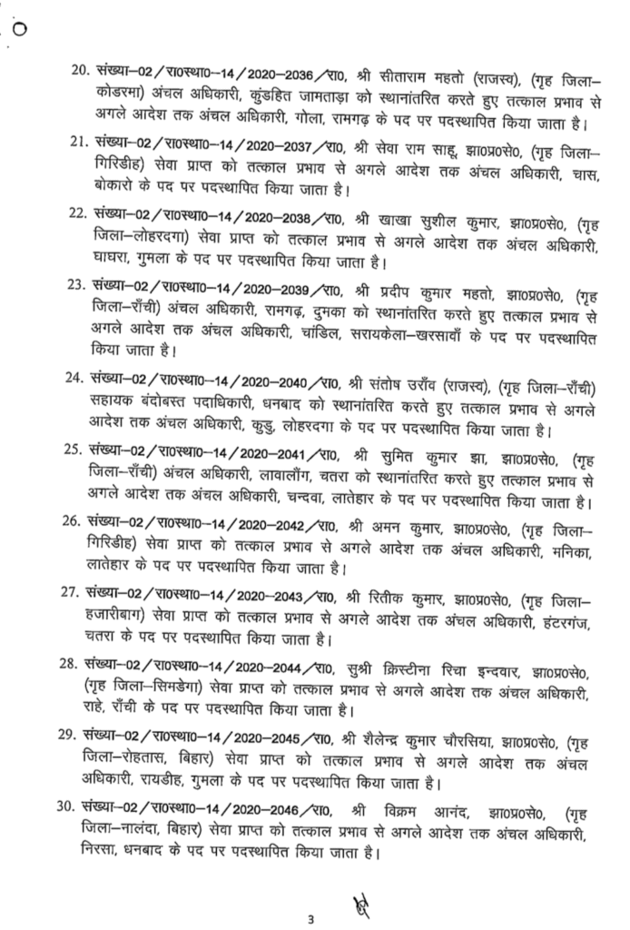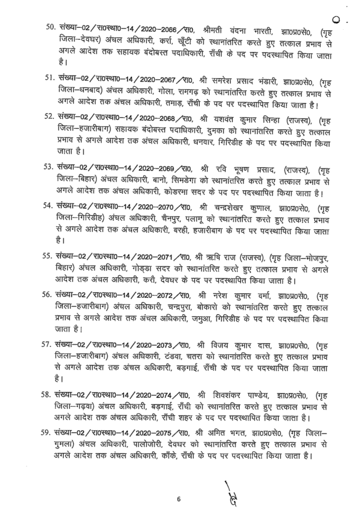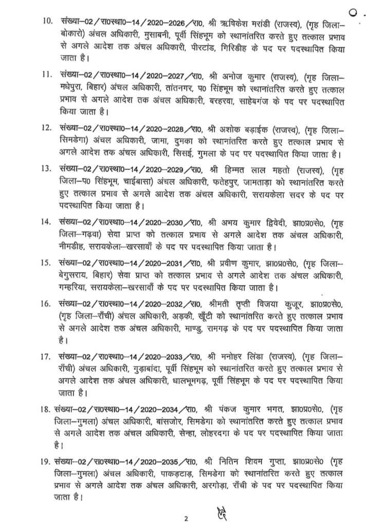 झारखंड में बड़े पैमाने पर सीओ का स्थानांतरण, स्वास्थ्य विभाग में भी चली तबादला एक्सप्रेस