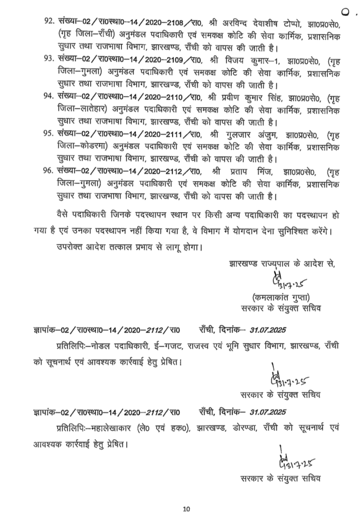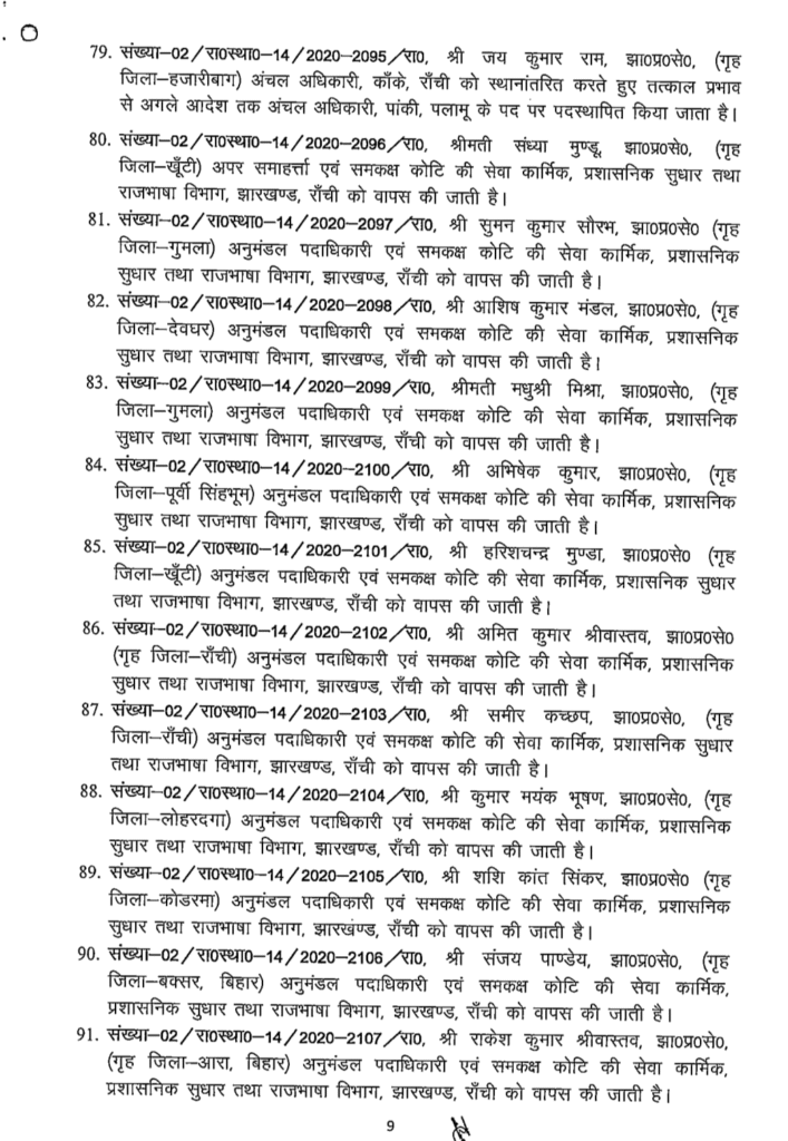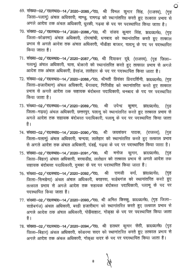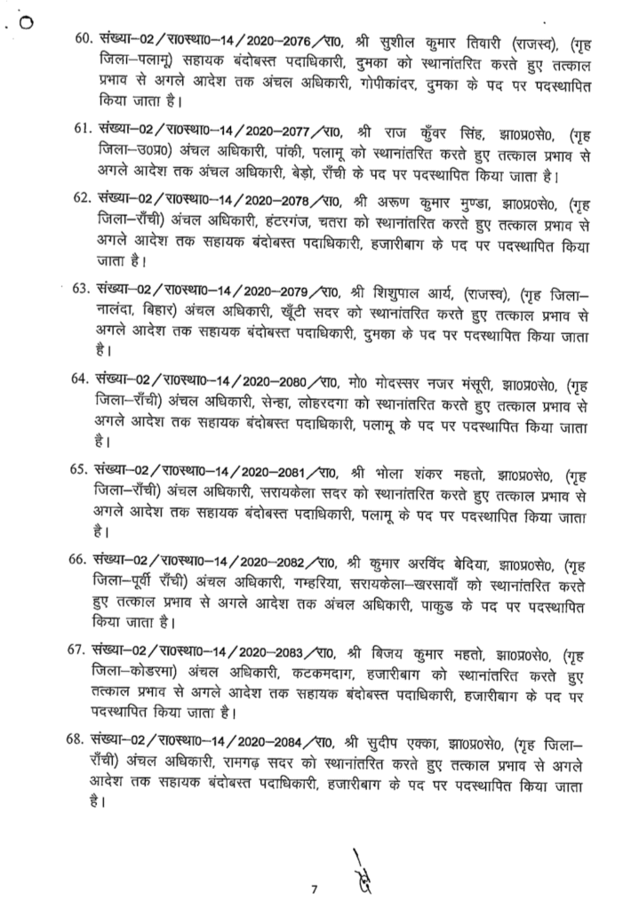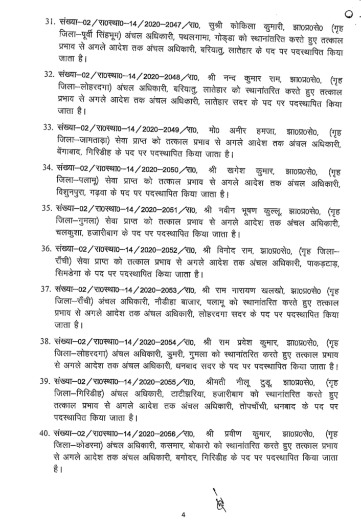 झारखंड में बड़े पैमाने पर सीओ का स्थानांतरण, स्वास्थ्य विभाग में भी चली तबादला एक्सप्रेस