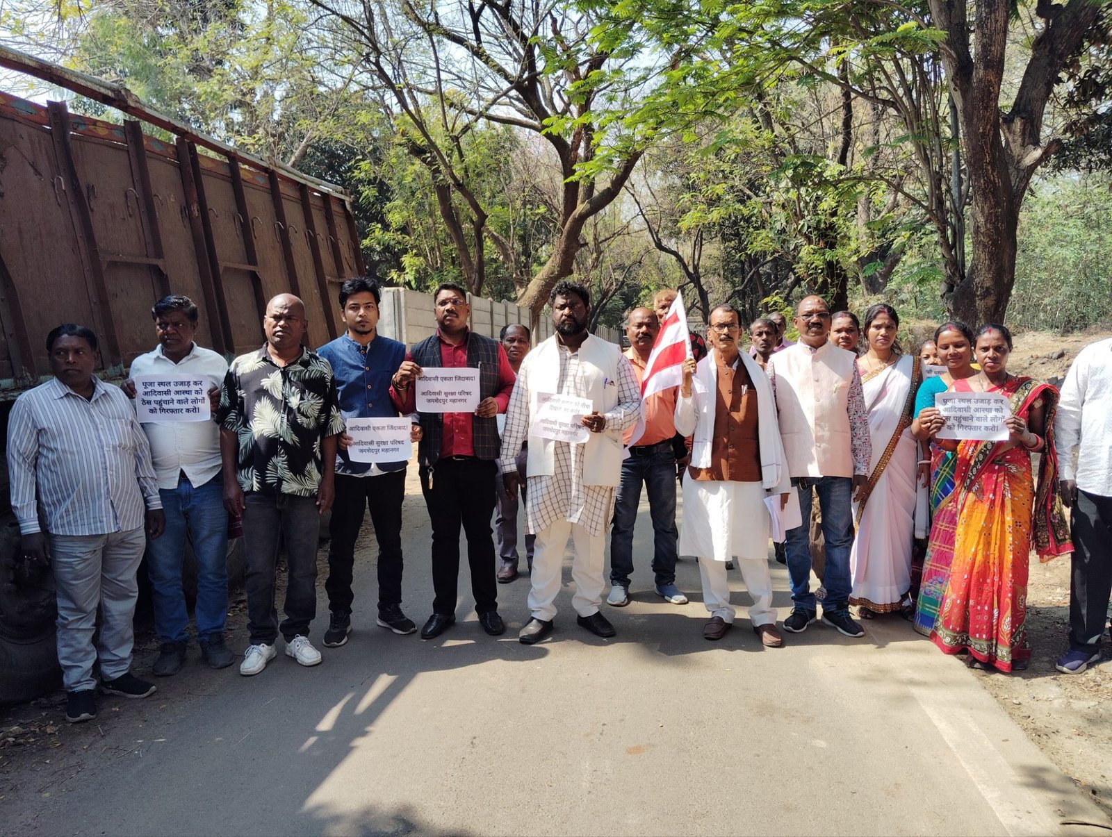 सालगाझुड़ी आदिवासी पूजा स्थल पर तोड़फोड़ के खिलाफ आदिवासी सुरक्षा परिषद का टेल्को थाने पर धरना