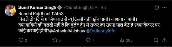 वे बता रहे हैं कि 20 किलोमीटर का सफर दो घंटे में भी तय नहीं हो पाई है. रेल मंत्री अश्विनी वैष्णव से पूछ रहे हैं कि बुलेट ट्रेन का सपना कैसे देखें? रेल मंत्री का कोई जवाब नहीं आया है.